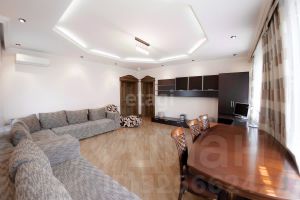 На 1 этаже квартиры расположена большая гостиная с мягкой мебелью, действующим камином и зоной кинотеатра, 2 комнаты, санузел с душевой кабиной и помещением под сауну или кладовку, кухня (кухонный гарнитур из натурального дерева, вместительный шкаф со встроенным двухдверным холодильником останутся новых хозяевам!).