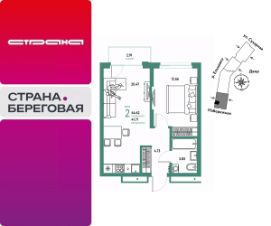Продается 2комнатная квартира на 3 этаже от застройщика Страна Девелопмент. Площадь квартиры 44,62 кв. м.