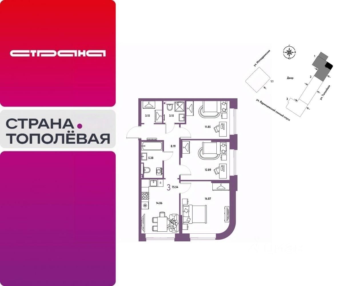 Новая квартира в ЖК "Страна.Тополёвая" напрямую от федерального застройщика "Страна Девелопмент"