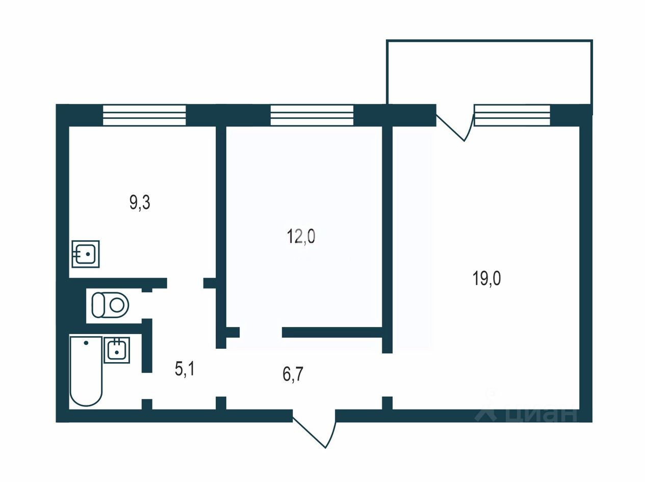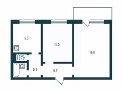 Общая площадь: 55,9 м²