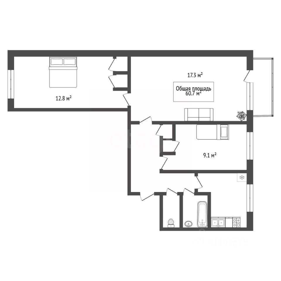 Все помещения светлые, балкон и лоджия застеклены. В квартире выполнен качественный косметический ремонт: установлены современные пластиковые окна, заменены радиаторы отопления, уложен новый линолеум, в санузле — кафельная плитка.