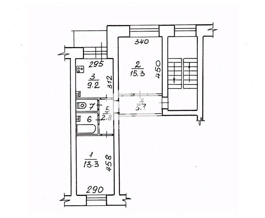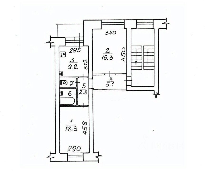 В квартире один раздельный санузел, общая площадь — 52 кв. м, жилая — 28,6 кв. м, площадь кухни — 9,2 кв. м. Квартира без отделки, что даёт возможность новому владельцу реализовать свои дизайнерские идеи.