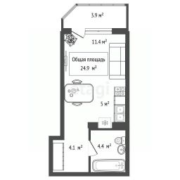 Продается уютная студия площадью 25 кв.м с отдельным балконом на 9 этаже 15-этажного монолитного дома по адресу ул. Приморская, 24.