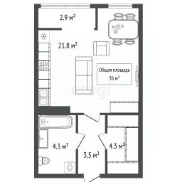 - Общая площадь: 36 м²