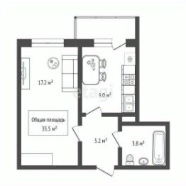 Квартира продается с мебелью, отличное расположение для проживания или сдачи в аренду. Общая площадь квартиры составляет 35 кв. м, жилая площадь — 17 кв. м, а кухня занимает 9 кв. м. Высота потолков — 2.7 метра, что создаёт ощущение простора. Окна выходят во двор, поэтому в квартире всегда тихо и спокойно.