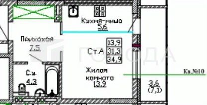 34,9 м²