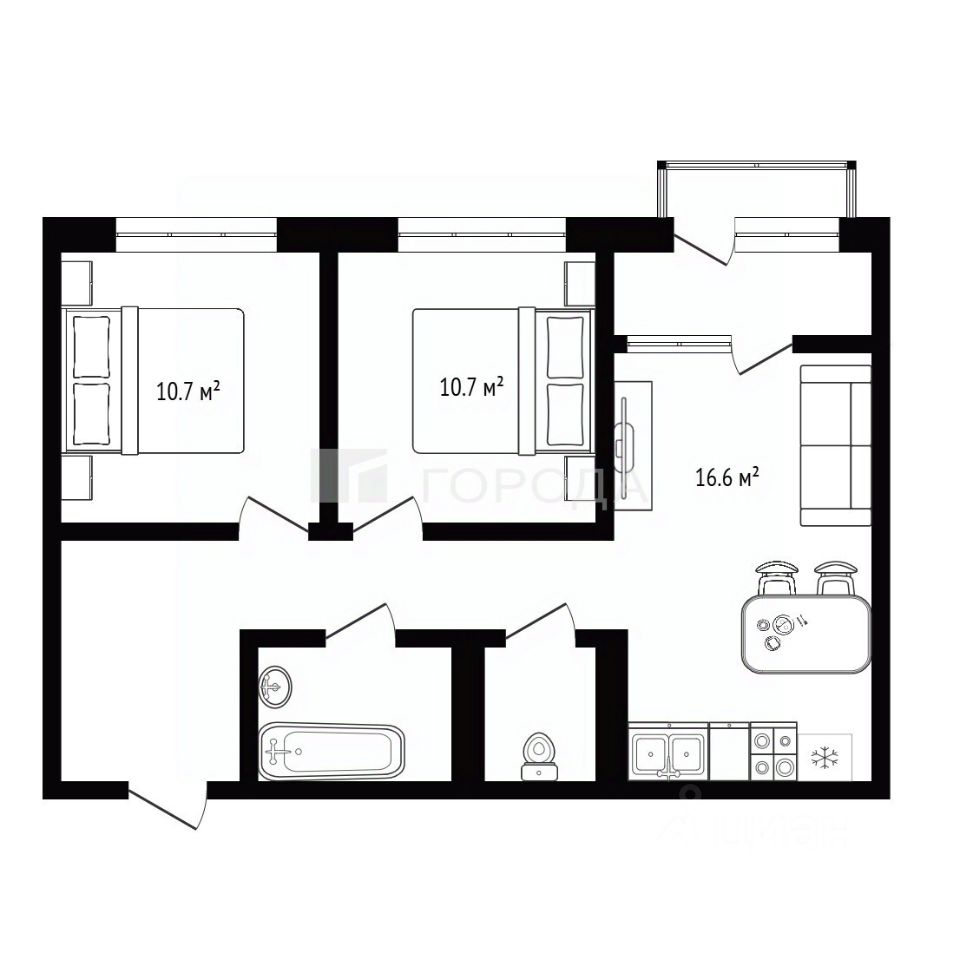 Кирпичный материал здания обеспечивает тепло и звукоизоляцию, поэтому в квартире всегда уютно и тихо.