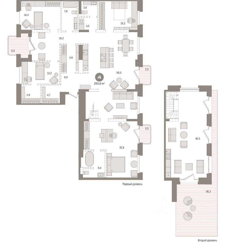 Продаётся 4-комнатная квартира в сданном доме (Дом 6 (2 этап)), срок сдачи: IV-кв. 2025, общей площадью 293.8 кв.м., на 8 этаже. Квартал на Декабристов от застройщика "Сибакадемстрой" расположен в тихом центре Новосибирска на пересечении улиц Декабристов — Сакко и Ванцетти в Октябрьском районе. Одним из главных преимуществ квартала является месторасположение: до ближайшего метро "Октябрьская" — 500 метров, до площади Ленина — 5 минут, до ж/д вокзала — 15 минут, до аэропота — 30 минут. В пешей доступности 2 детских сада, супермаркет "Бахетле", библиотека ГПНТБ, арбитражный суд, университет СибАГС, банки, фитнес-центры, почта, медицинские учреждения, 4 школы. Квартал на Декабристов представляет собой три дома переменной этажности с подземным паркингом, закрытым двором без доступа автомобилей, пропускной системой въезда, видеонаблюдением, охраной, красивой дворовой территорией с многоуровневой системой освещения, ландшафтным озеленением, аллеями, скамейками, беседками, детскими площадками и пешеходным фонтаном.