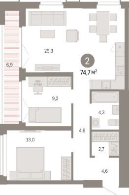 Продаётся 2-комнатная квартира в строящемся доме (Дом 45), срок сдачи: III-кв. 2028, общей площадью 74.7 кв.м., на 16 этаже. Микрорайон "Европейский берег" расположен на правом берегу Оки, между Бугринским и Октябрьским мостами, в пятнадцати минутах езды от центра Новосибирска. Прямой доступ на Большевистскую улицу (магистраль Р-256 "Чуйский тракт") обеспечивает удобный и быстрый путь в любой район города. По трассе можно совершить путешествие через Алтай до границы с Монголией.