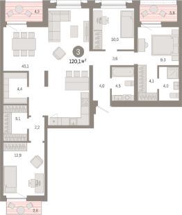 Продаётся 3-комнатная квартира в строящемся доме (Дом 44), срок сдачи: II-кв. 2026, общей площадью 120.1 кв.м., на 8 этаже. Микрорайон "Европейский берег" расположен на правом берегу Оки, между Бугринским и Октябрьским мостами, в пятнадцати минутах езды от центра Новосибирска. Прямой доступ на Большевистскую улицу (магистраль Р-256 "Чуйский тракт") обеспечивает удобный и быстрый путь в любой район города. По трассе можно совершить путешествие через Алтай до границы с Монголией.