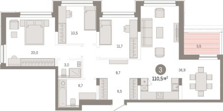 Продаётся 3-комнатная квартира в сданном доме (Дом 48), срок сдачи: IV-кв. 2025, общей площадью 110.5 кв.м., на 8 этаже. Микрорайон "Европейский берег" расположен на правом берегу Оки, между Бугринским и Октябрьским мостами, в пятнадцати минутах езды от центра Новосибирска. Прямой доступ на Большевистскую улицу (магистраль Р-256 "Чуйский тракт") обеспечивает удобный и быстрый путь в любой район города. По трассе можно совершить путешествие через Алтай до границы с Монголией.
