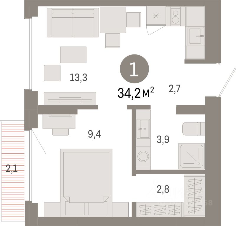 34,2 м²