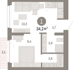 Продаётся 1-комнатная квартира в строящемся доме (Дом 1), срок сдачи: II-кв. 2028, общей площадью 34.2 кв.м., на 12 этаже. "Квартал Лебедевского" - новый проект компании "Брусника" в Заельцовском районе Новосибирска на ул. Георгия Колонды.