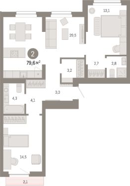 Продаётся 2-комнатная квартира в строящемся доме (Дом 1), срок сдачи: II-кв. 2028, общей площадью 79.6 кв.м., на 3 этаже. "Квартал Лебедевского" - новый проект компании "Брусника" в Заельцовском районе Новосибирска на ул. Георгия Колонды.