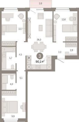 Продаётся 3-комнатная квартира в строящемся доме (Дом 1), срок сдачи: IV-кв. 2028, общей площадью 90.1 кв.м., на 8 этаже. Новый жилой комплекс "Город-на-озере" от застройщика "Брусника" расположен в Дзержинском районе Новосибирска в границах ул. Ипподромской, ул. Фрунзе, Журинского спуска.