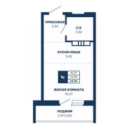 Продаётся студия в строящемся доме (ГП-1, БС 1,2), срок сдачи: III-кв. 2026, общей площадью 24.66 кв.м., на 7 этаже.