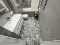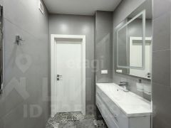 - Один санузел просторный с ванной и тропическим душем, подвесной инсталляцией, красивой дизайнерской тумбой-раковиной и зеркалом с подсветкой, на полу керамогранит.