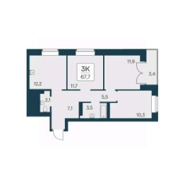 Общая площадь67,7 м²