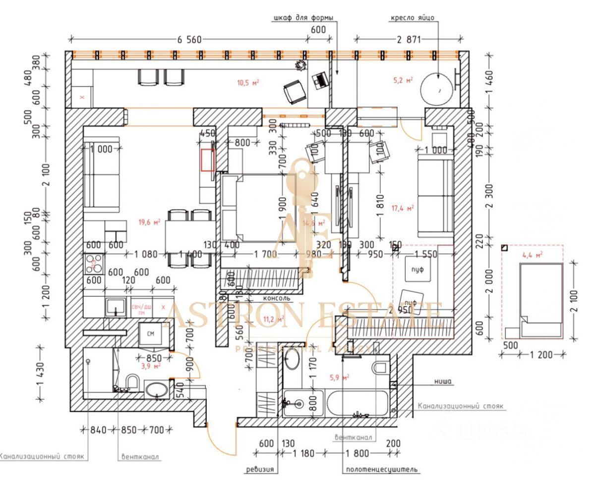 Вся мебель и шкафы изготовлены под заказ по дополнительному дизайн проекту (гра