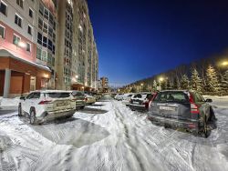 На придомовой территории есть наземная парковка, которая закрывается шлагбаумом.