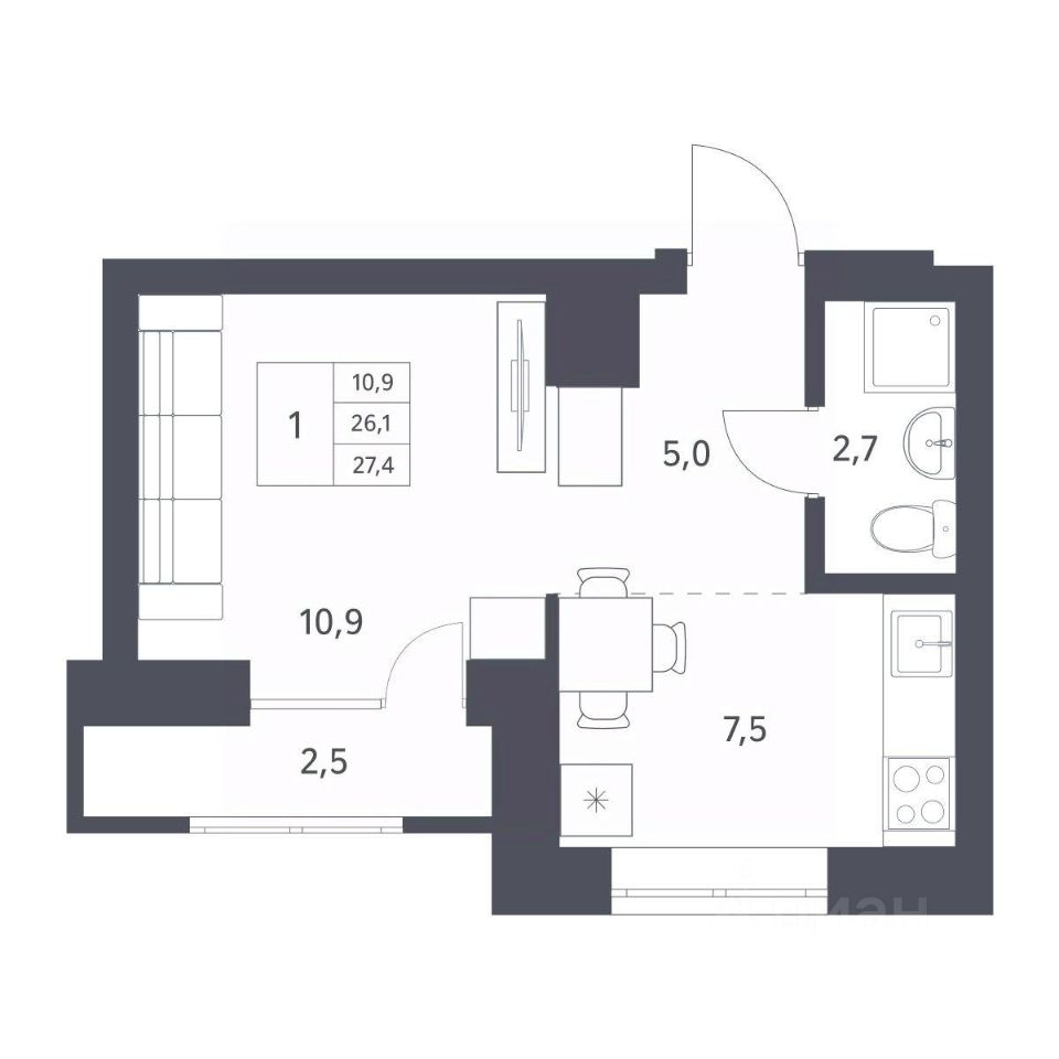 Продается 1-комн. квартира с отделкой White box. Квартира расположена на 6 этаже 25 этажного монолитно-кирпичного дома в клубном комплексе "Новаторы" от группы компаний "Поляков".
