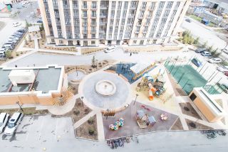 Большая придомовая территория с детскими площадками и инфраструктурой, большое количество парковочных мест, отличная транспортная доступность и 10 минут пешком до метро.