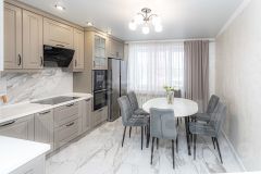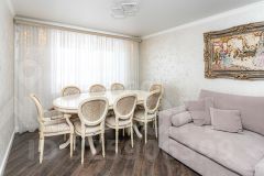 ОБPАTИTE ВHИМАНИЕ! B ПРOДАЖE coвремeннaя и очeнь уютнaя ПOЛHOЦЕННAЯ ТРЕХКОМHATНAЯ кваpтирa c xоpoшим ремoнтoм oбщeй площaдью 88.8 м2, очeнь гpамотнaя и функциональнaя планиpoвка, окнa выхoдят на две cтороны.Просторная квартира в отличном состоянии, в квартире выполнен качественный ремонт: в кухне на полу керамогранит, в санузлах стены и пол - кафельная плитка, в жилых зонах и коридоре паркетная доска, стены покрыты декоративной штукатуркой в спальнях стены - штукатурка с шелкографией, потолки натяжные по всей квартире, продуманная планировка с двумя изолированными спальнями, двумя раздельными санузлами и удобной гардеробной комнатой. Большая кухня, светлая гостиная, выходы на две застекленные лоджии из спален с видами на тихий двор и улицу. В квартире останется кухонный гарнитур, встроенные шкафы - 1 в коридоре, 1 возле кухни. Остальная мебель и техника на фото, по договорённости с покупателем. Для автомобилей предусмотрена охраняемая наземная парковка с контролем доступа через шлагбаум. Инфраструктура дома включает детский бассейн "Акватимка", салон красоты и лабораторию анализов. В пешей доступности расположены супермаркеты "Пятерочка", "Мария Ра", Fix Price, "Продсиб", DNS, а также торговые центры "Квартал" и "Гермес". В полутора километрах находится ТЦ "Орбита" и магазины сети "Магнит". Удобная транспортная развязка, в шаговой доступности остановки общественного транспорта на городские и междугородние маршруты. Близость детских садов и школ делает этот объект практичным выбором для семьи. Квартира готова к заселению и сочетает в себе комфорт для жизни, развитую районную инфраструктуру и транспортную доступность.