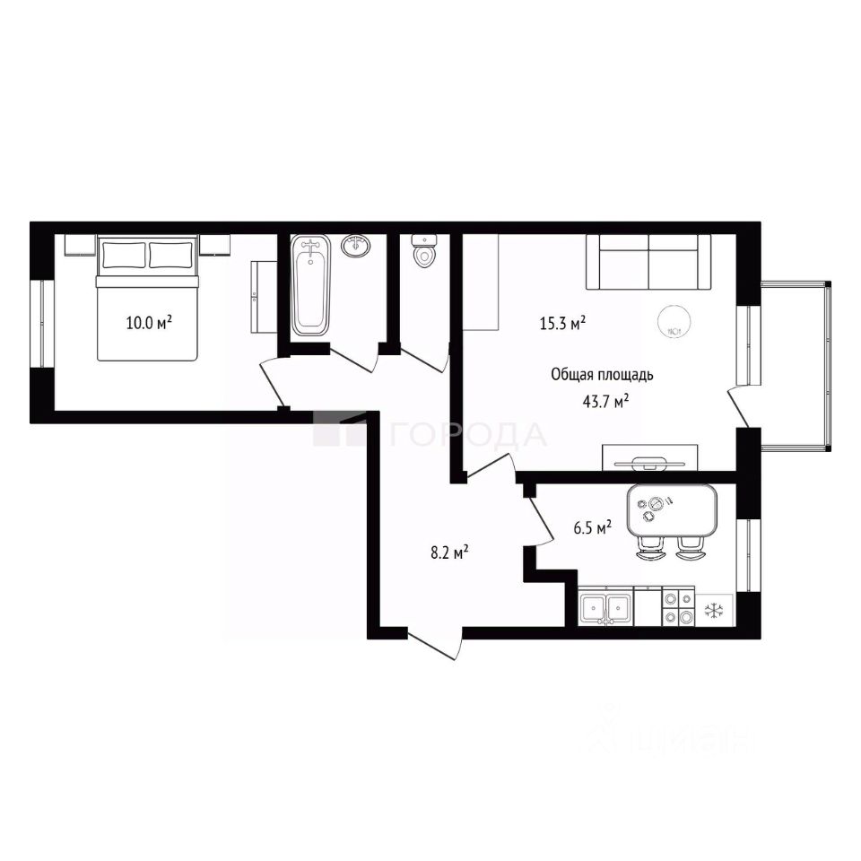 43,7 м²