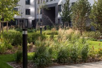 Первые этажи вдоль Мочищенского шоссе и улицы Аэропорт мы отдали под полезные сервисы и магазины. Активный фронт позволил интегрировать квартал в городской контекст. На территории "Авиатора" расположен многофункциональный спортивный комплекс с открытым амфитеатром, который станет центром притяжения всего района.