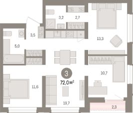 Продаётся 3-комнатная квартира в сданном доме (Дом 3), срок сдачи: IV-кв. 2024, общей площадью 72 кв.м., на 5 этаже. Квартал вблизи Красного проспекта