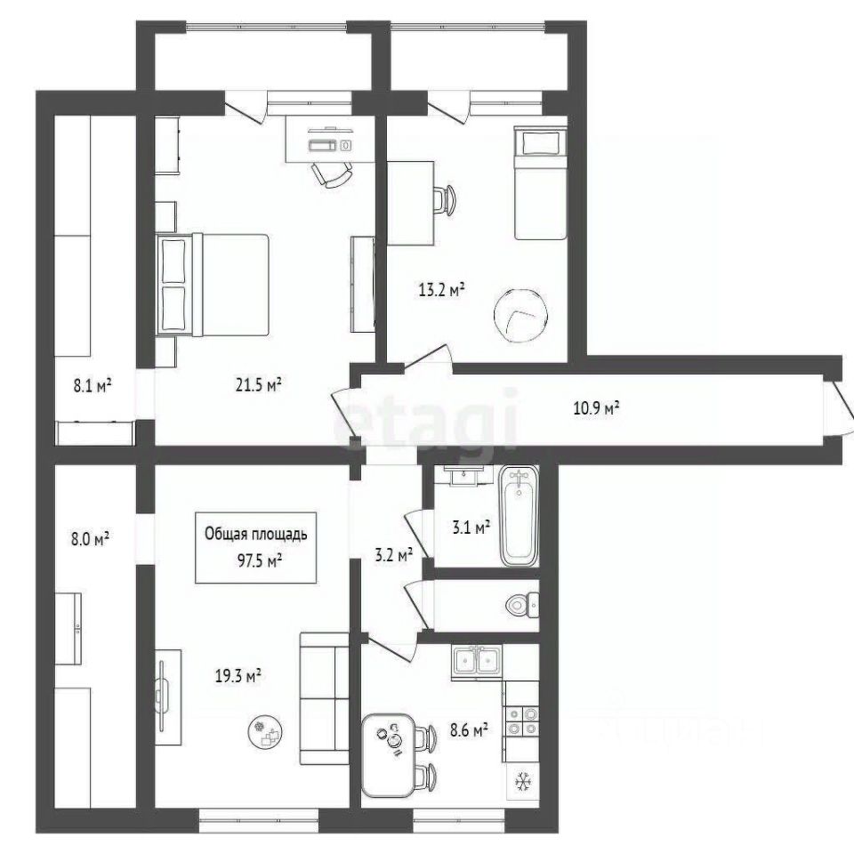 Продается великолепная квартира общей площадью 97,5 м², где каждый уголок наполнен уютом и комфортом! Это идеальное место для жизни, где все комнаты изолированы, а две просторные спальни дополнены гардеробными, вмещающими все ваши вещи. Светлая квартира с окнами на восток и запад наполняет пространство солнечным светом в течение всего дня. Состояние квартиры просто отличное заходите и живите без лишних затрат на ремонт!