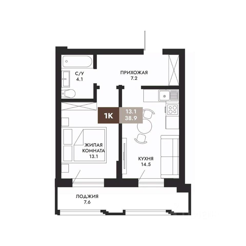 38,9 м²