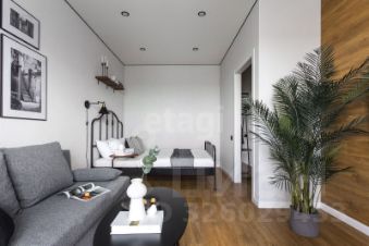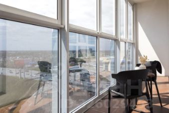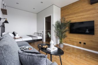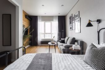 Планировка включает одну просторную комнату и совмещенный санузел. Также есть лоджия, где можно организовать уютное место для отдыха. Дом оборудован как пассажирским, так и грузовым лифтами, поэтому можно легко и быстро добираться до квартиры с покупками или крупными вещами.