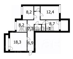 окна на две стороны . балкон и лоджия застеклены. комнаты 18,3 м2 + 8,2 м2 + 8,2 м2 + 12,4 м2. санузел раздельный.