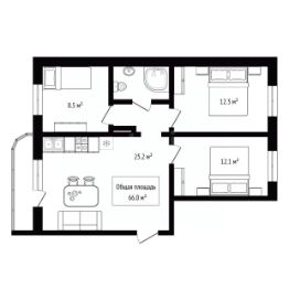 Узаконенная перепланировка позволила создать эффективное пространство с четким разделением на приватную и гостевую зоны. Квартира имеет три полноценные комнаты и вместительную кухню-гостиную.