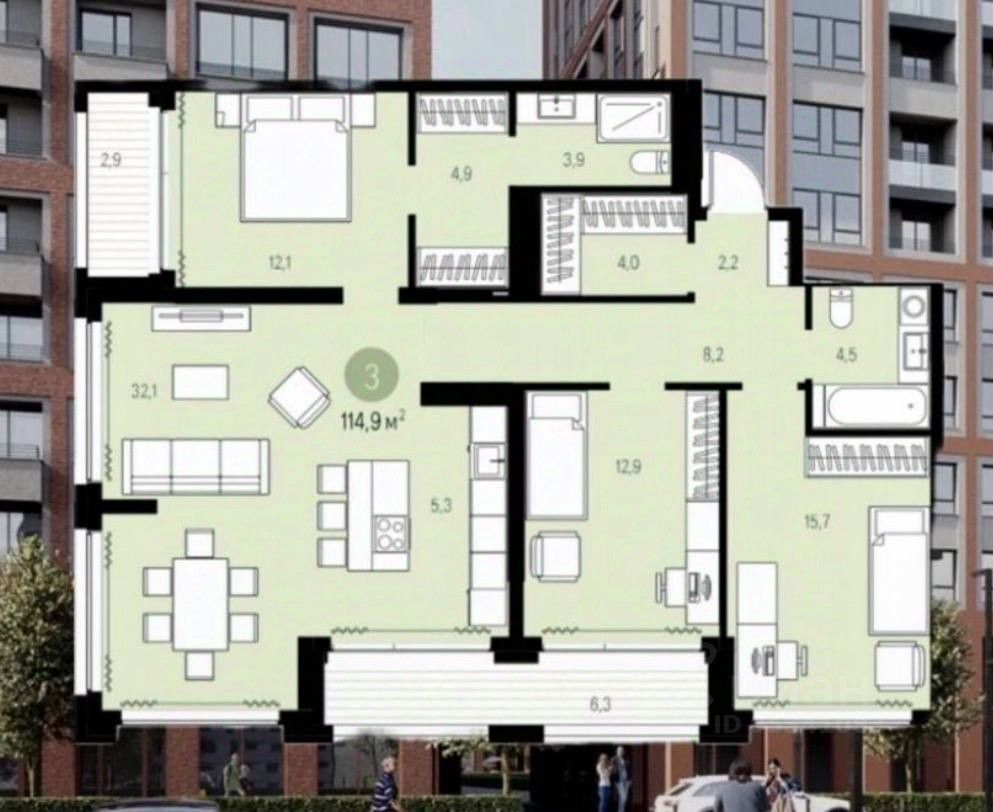 * Квартира: 4 комнаты. Планировка, которая больше не тиражируется застройщиком. Это делает лот по-настоящему эксклюзивным.