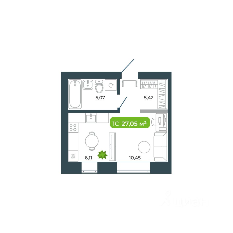 27,05 м²