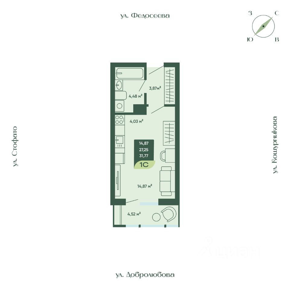 Продаётся 1-комнатная квартира в строящемся доме (Дом 1), срок сдачи: II-кв. 2026, общей площадью 31.77 кв.м., на 11 этаже. Новый жилой дом "Мичурин" от Специализированного застройщика "КМ" расположен в Октябрьском районе Новосибирска на ул. Стофато.