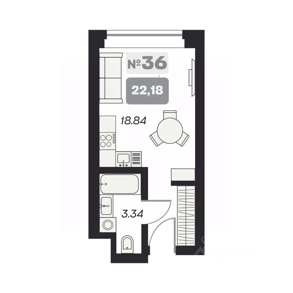 Общая площадь22,18 м²