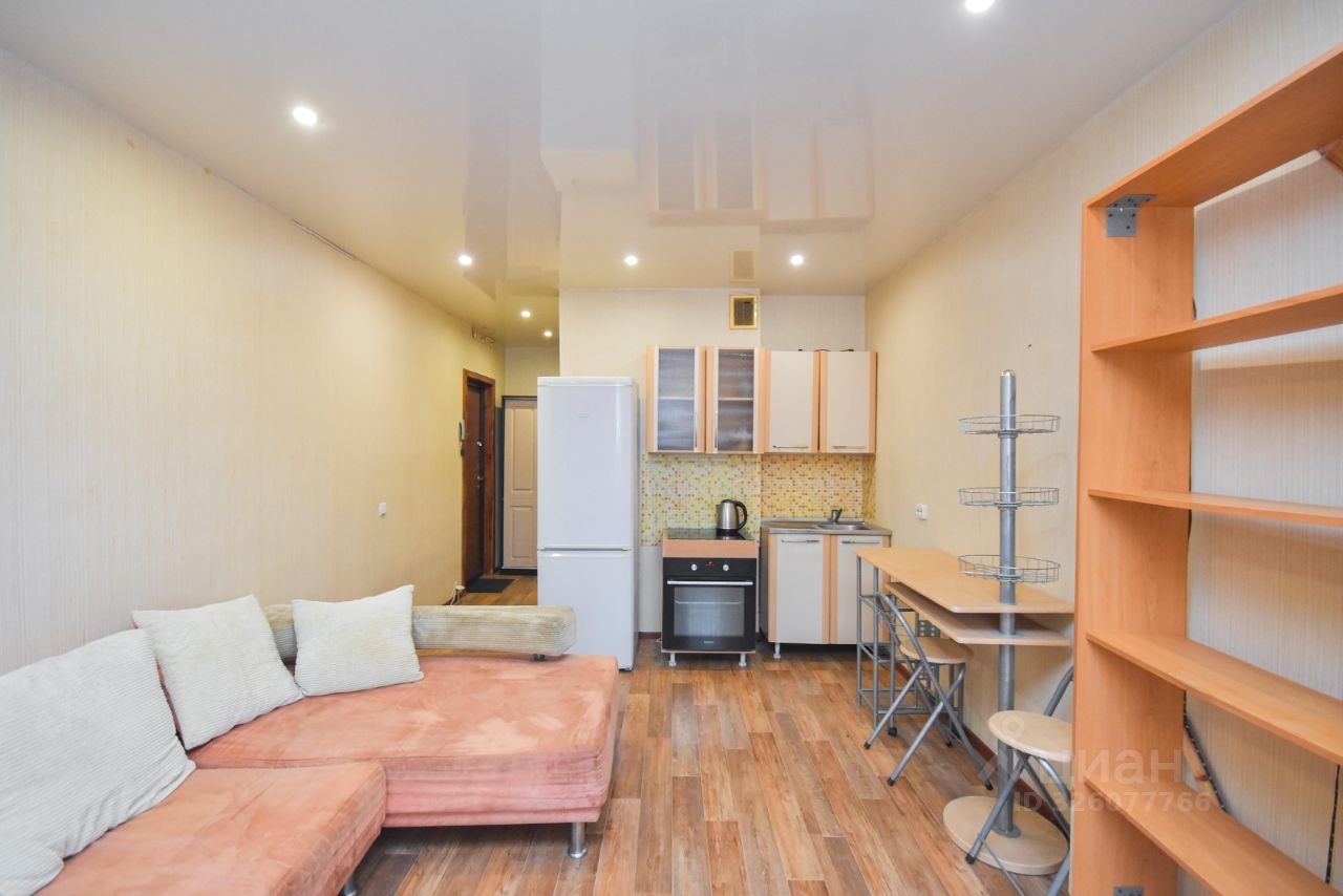 Продаётся уютная студия площадью 27.6 квадратных метров на двенадцатом этаже семнадцатиэтажного панельного дома, построенного в 2013 году.