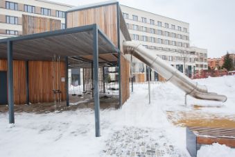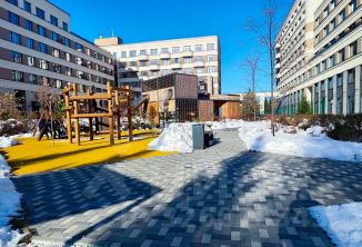 Одна из ключевых особенностей квартала — рекреационная зона в хвойном лесу: