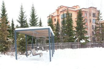 Огромный, красивый двор с качелями и гамаками — место для отдыха взрослых и детей.
