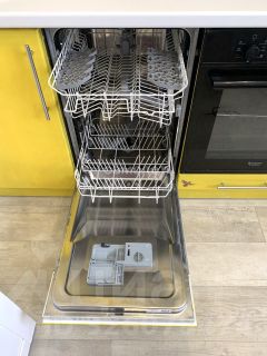 Кухня укомплектована всем необходимым: встроенный гарнитур, варочная панель, духовой шкаф и посудомоечная машина — всё остаётся новым владельцам.