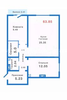 В продаже прекрасная квартира, преимуществом которой является уникальная планировка. Две изолированные спальни плюс просторная кухня-гостиная 25кв.м.