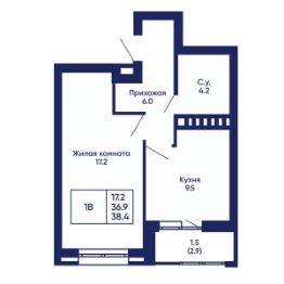Общая площадь38,4 м²