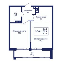 Общая площадь42,1 м²