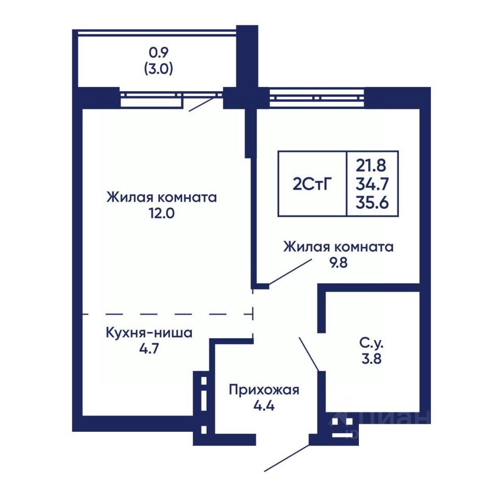 Жилая площадь21,8 м²