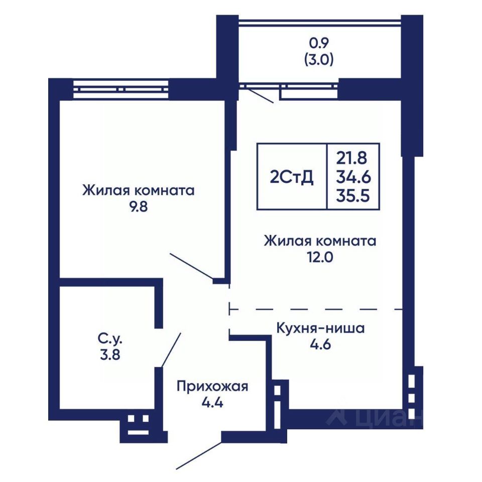 Жилая площадь21,8 м²