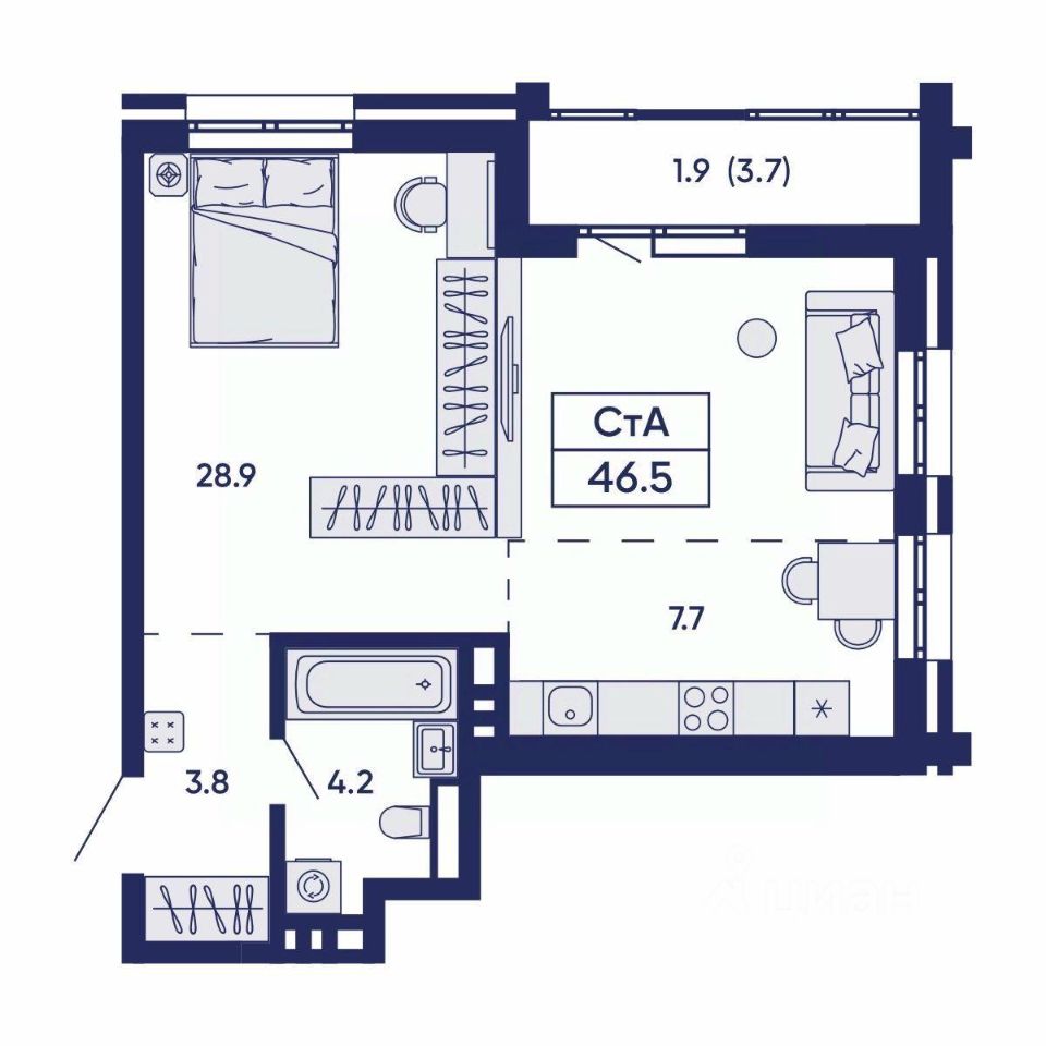 Общая площадь46,5 м²