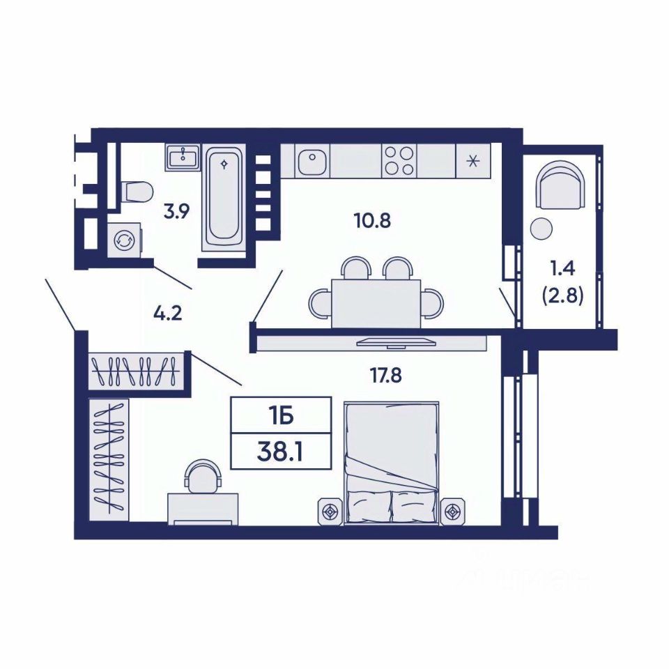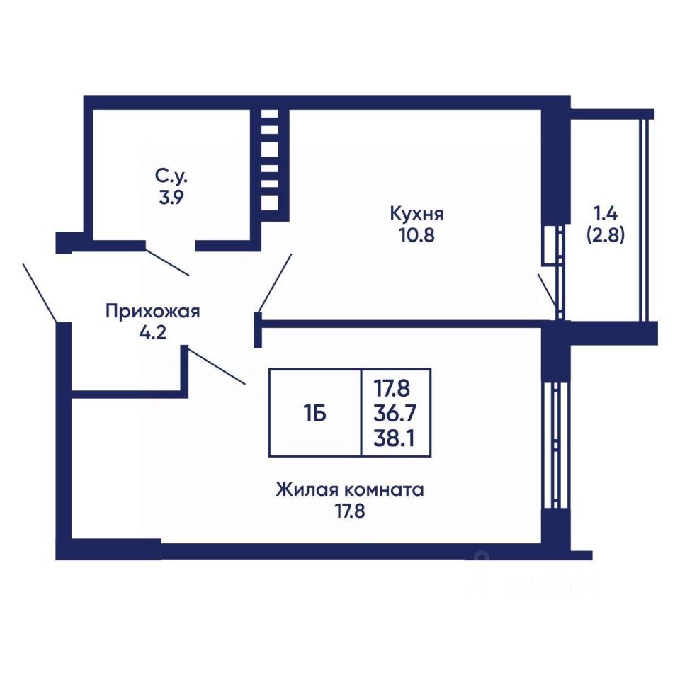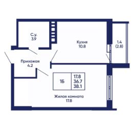 Общая площадь38,1 м²